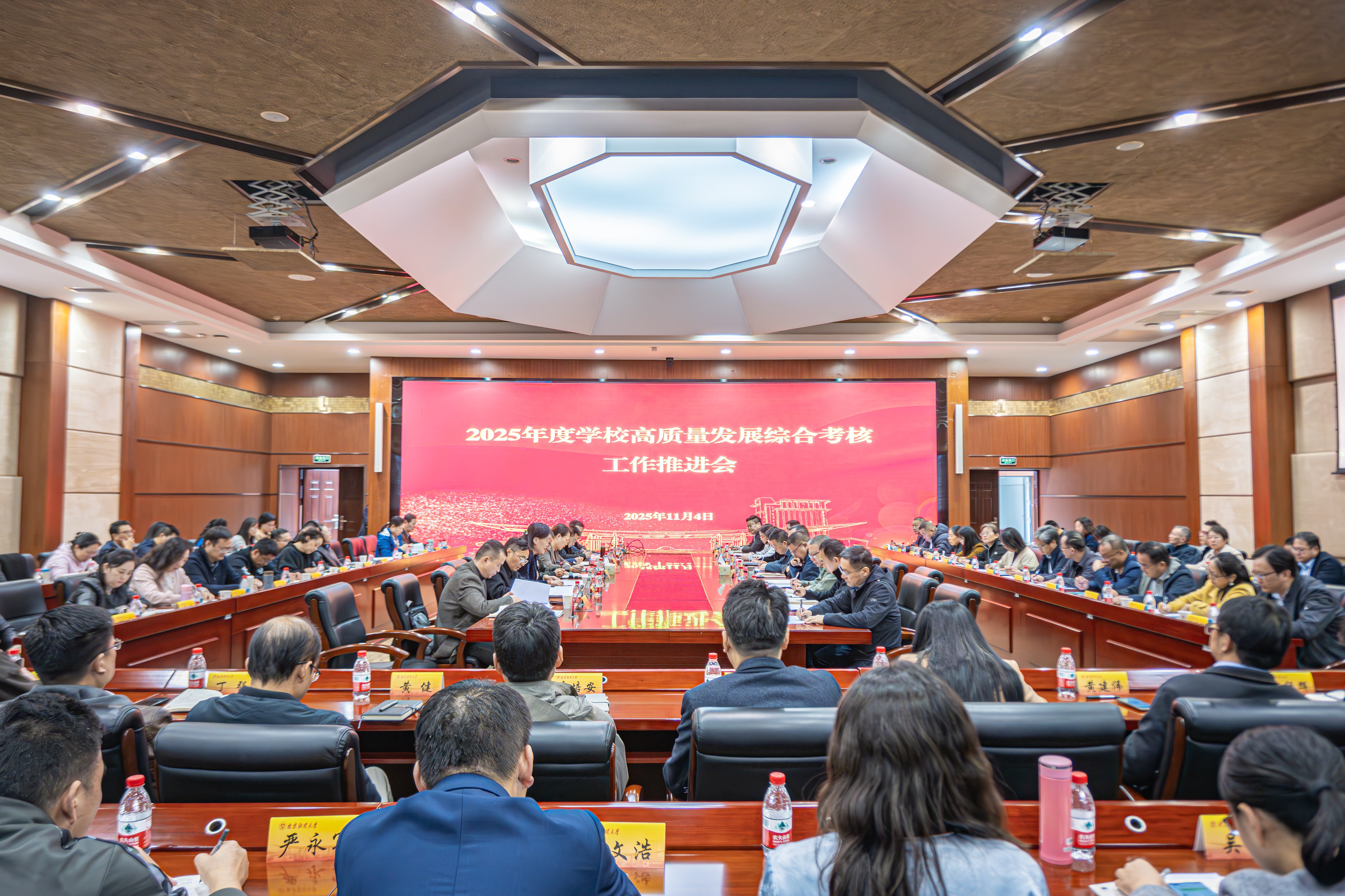 在高质量发展综合考核工作推进会上,吕戎部长通报了党的建设成效评价考核指标总体落实情况,改革发展办公室主任王进通报了高质量发展绩效评价考核指标总体落实情况,党委组织部、党委宣传部、党委保卫部、人事处和科学研究院分别汇报了牵头指标的自评情况和下一阶段推进举措。李煜副校长作动员讲话,对学校各单位抓好2025年度综合考核工作提出三点意见:一是要比学赶超、争先进位,为学校事业高质量发展注入强劲动力;二是要聚焦关键、科学谋划,将指标落地与各单位“十五五”规划编制工作有机融合;三是要担当作为、协同联动,推动各项工作更深更实。李群副书记作总结讲话。他强调,各单位要认真对照学校年度重点工作任务和综合考核指标体系,查漏补缺、逐项落实。一是要深化政治自觉,从巡视整改的政治高度、学校发展的战略维度、师生利益的民生角度,扛起任务落实“硬担当”;二是要深化靶向自觉,主动做到“颗粒归仓”、联动配合,打好任务落实“硬战役”;三是要深化责任自觉,把担子挑起来、把工作抓起来、把效率提起来,筑牢任务落实“硬保障”。