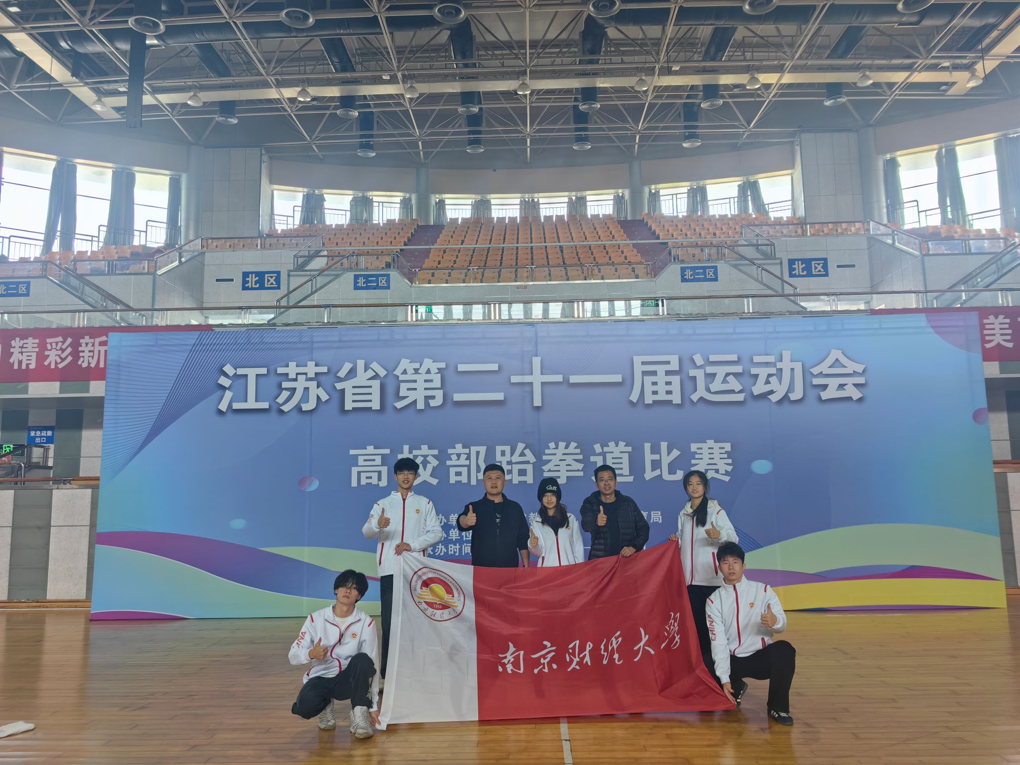 11月5日至10日,江苏省第二十一届运动会高校部跆拳道比赛在江苏师范大学举办。金年会代表队在比赛中发挥出色,计算机与人工智能学院软件2402班黎宁获男子63公斤级金牌,并获得“优秀运动员”称号;金融学院金融工程2401班郑琦霖获男子54公斤级第五名。