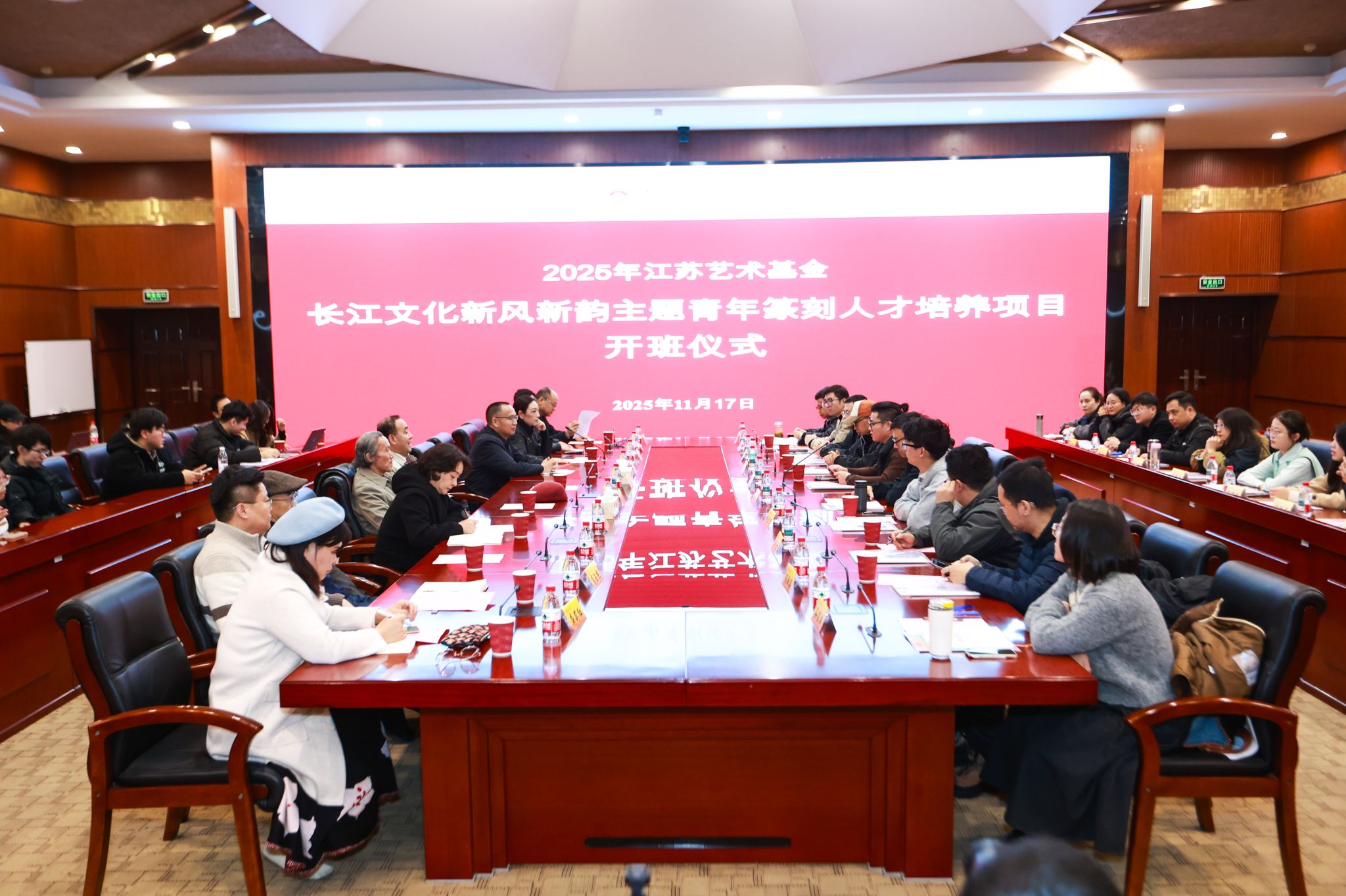 11月17日下午,2025年江苏艺术基金“长江文化新风新韵主题青年篆刻人才培养项目”开班仪式在金年会仙林校区工科楼二楼会议室举行。校长程永波,党委常委、副校长叶林祥出席仪式。中国标准草书学社社长、南京印社名誉社长、南京艺术学院教授、博士生导师徐利明等嘉宾,金年会党政办、党委宣传部、科学研究院、艺术教育中心等部门负责人,以及培训班全体学员、篆刻传承基地师生和书法篆刻专业研究生代表参加仪式。仪式由美育研究院院长段伟伟主持。