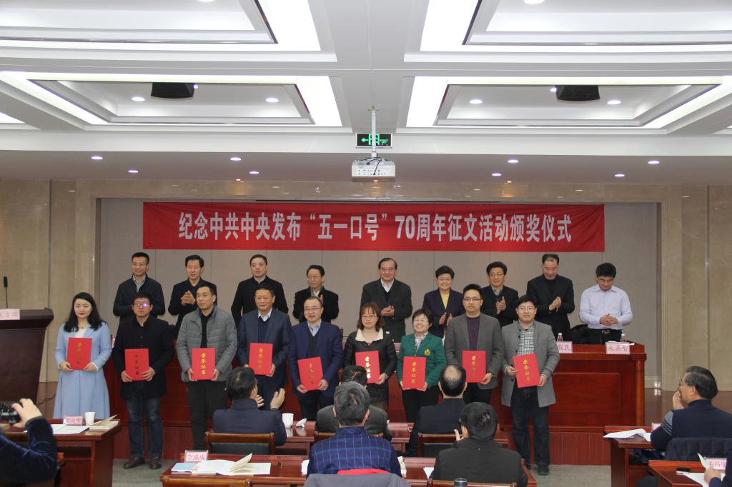 1月28日上午,由江苏省委统战部主办的纪念中共中央发布“五一口号”70周年征文活动颁奖仪式在江苏省社会主义学院举行。省委统战部副部长、省社会主义学院党组书记瞿超,省委统战部副部长方未艾出席颁奖仪式。金年会民革支部成员、新闻学院蒋建梅教授的作品《风雨同舟七十年 携手共进将梦圆》荣获二等奖,新闻学院党总支书记周亚芳的作品《不忘初心 携手并进》荣获三等奖。
