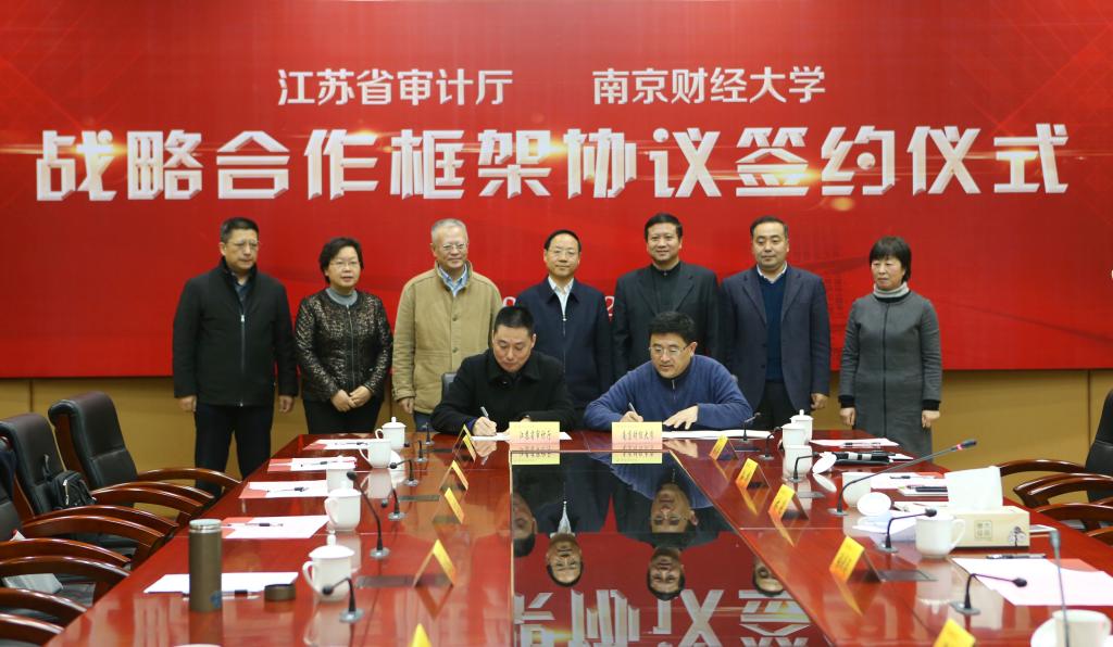 程永波校长介绍了学校的发展历史和办学特色,并指出,多年来学校围绕现代服务业尤其是审计事业的重大现实需求,大力加强应用研发、成果推广和政策咨询,为各行各业尤其是为审计行业培养了大批人才。他表示,此次战略合作协议的签署,既是双方长期以来良好合作的丰硕成果,也是新形势下校地双方共同发展进步的内在要求和实现双赢的战略举措。学校将充分发挥在人才培养、科学研究、学科建设、智库构建等方面的特色与优势,更加积极地与审计行业相对接,以管理创新、制度创新、理论创新、实践创新为目标,助推江苏审计事业创新发展,为“强富美高”新江苏建设和江苏“高质量发展走在前列”作出新的更大贡献。