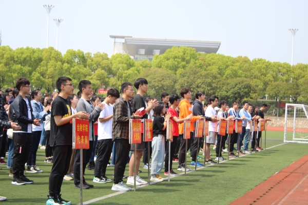 4月17日下午,由校团委、校体育部、校学生会联合举办的“走下网络、走出宿舍、走向操场”为主题的第十一届体育文化节开幕式在金年会仙林校区西苑田径场举行。校党委常委、副校长李群,著名篮球运动员、金年会2005级校友易立出席开幕式,相关职能部门负责人及各学院代表队参加开幕式,开幕式由校团委副书记王孝晨主持。