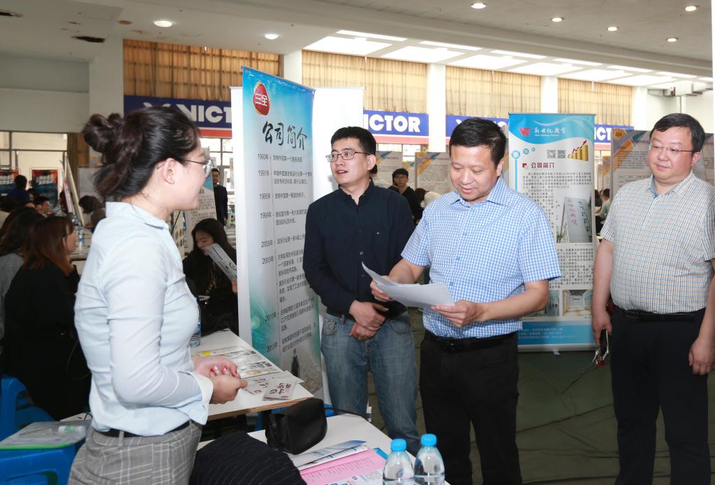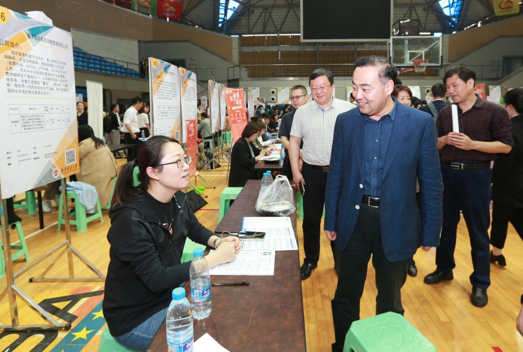 4月24日,金年会2019届毕业生春季校园招聘会在仙林校区体育馆举办,近700家公司进场招聘。校党委书记张利民、校长程永波深入招聘现场,与用人单位和毕业生沟通交流,实地了解招聘单位和毕业生的情况并给予毕业生指导。