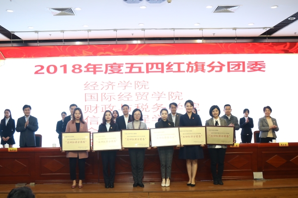 2018年度五四红旗分团委获得学院代表上台领奖