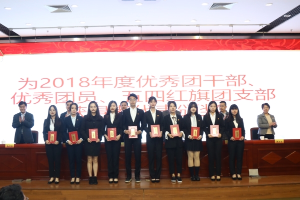 2018年度优秀团干部、优秀团员、五四红旗团支部获得者代表上台领奖
