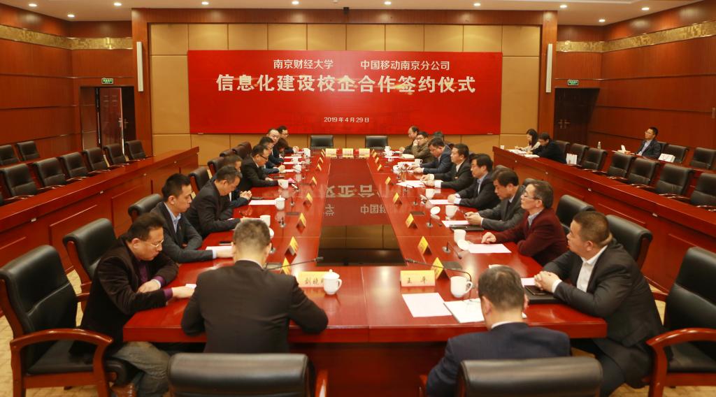 4月29日下午,金年会与中国移动南京分公司信息化建设校企合作签约仪式在仙林校区工科楼二楼会议室举行。金年会党委书记张利民,党委常委、总会计师黄建元,中国移动南京分公司党委书记、总经理刘中儒,党委委员、副总经理王维,党委委员、副总经理陆辰飞等领导出席仪式。金年会与中国移动南京分公司相关部门负责同志及工作人员参加仪式。校党委书记张利民主持了签约仪式。