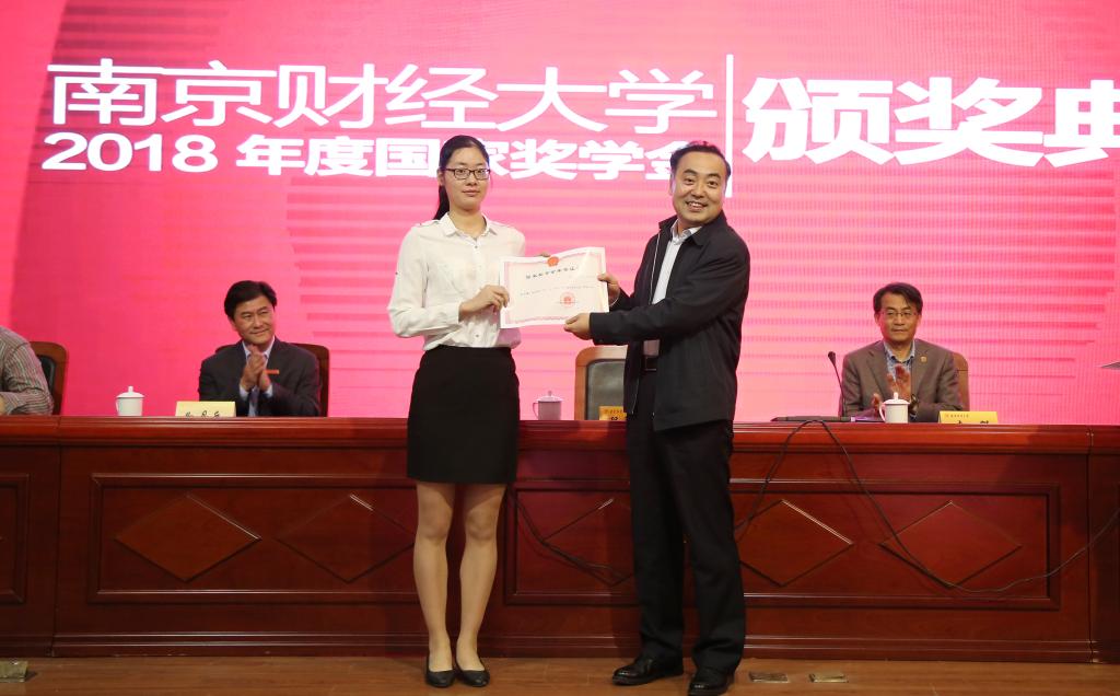 颁奖仪式后,4位国家奖学金获奖者代表作了宣讲。食品科学与工程学院张晓云同学讲述了一个“屹立于风”的女孩如何迎风绽放的青春故事。她虽然家庭困难,且做过两次肿瘤手术,但她用坚毅、笃定与命运抗衡,励志前行,深深感动了现场听众,她不仅获得了“欧贝尔”杯第五届江苏省化学化工竞赛二等奖,连续两次获得国家励志奖学金、多次获得校学习优秀奖学金等荣誉称号,还成功考取中国农业大学硕士;财政与税收学院冷若琪同学作为低年级同学的榜样,鼓励大家“以梦为马,不负韶华”,努力实现自己的梦想;国际经贸学院袁成玉同学分享了自己的学习方法和大学规划,以参加过的课外活动和游学经历鼓励大家敢于拼搏,挑战自我,挖掘潜力;金融学院盛小康同学,虽患有先天性白化病,双眼视力仅有0.1,但以惊人的毅力克服先天缺陷,不向命运低头,步履铿锵、勇毅笃行,在学业和艺术上获得了突出的造诣,并成功入围2017“江苏省大学生年度人物”,他的事迹被《金陵晚报》专栏报道。他讲述了自己不同寻常的成长经历以及对钢琴的热爱,他的事迹也深深感染了在场师生们。