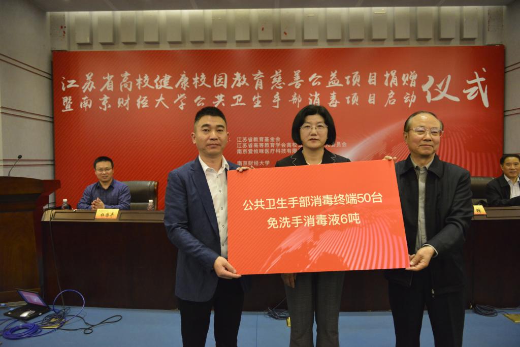 据悉,为助推我省高校健康校园建设,降低校园内人员密集公共场所的疾病传播概率,减少疾病发生,提高师生的健康防疫水平,江苏省教育基金会联合南京爱攸咪医疗科技有限公司在2019年拟为自愿加入本教育慈善公益项目的在宁高校人流密集的公共场所免费安装公共卫生手部消毒终端共约1000台左右,供学校免费使用。同时免费为受捐赠学校提供常年实际需要用量的免洗手消毒液。金年会获得的50台公共卫生手部消毒终端已全部安装并开始使用。