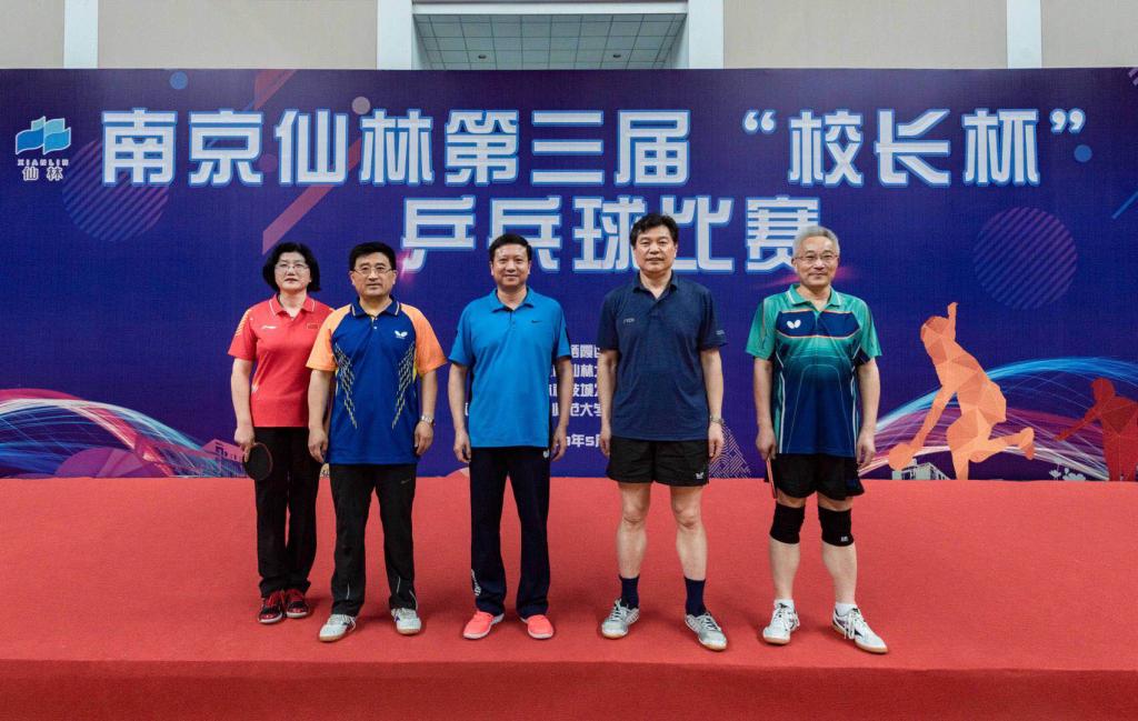5月25日,由南京市栖霞区人民政府、仙林大学城管理委员会、仙林科技城发展联盟主办,南京师范大学承办的南京仙林第三届“校长杯”乒乓球比赛在南京师范大学体育馆举行。栖霞区、大学城、经济技术开发区联队,南京大学、南京师范大学、金年会jinnianhuicom、南京森林警察学院、南京技师学院等高校共11支代表队参加比赛。金年会张利民书记、温潘亚副书记,乔均、邱伟芬、张为付副校长组队参加比赛。