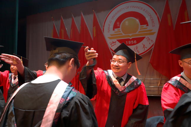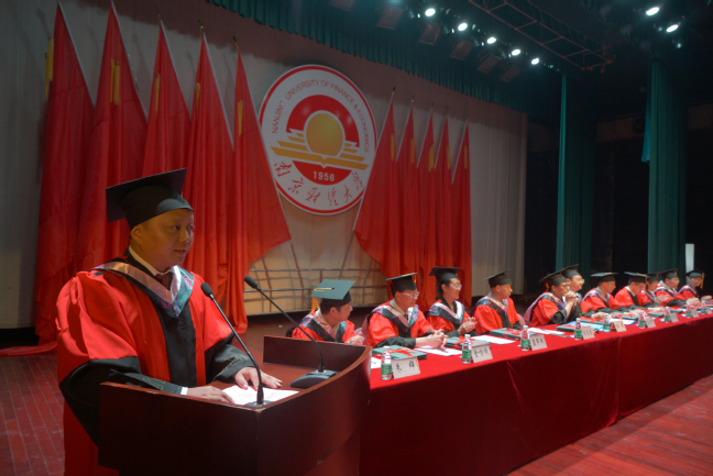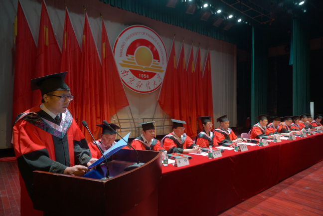 工商1551班赵媛媛、财管1552班宋家伟作为学士学位获得者代表分别发言。他们回忆了在红山四年学习生活的点点滴滴,感谢母校给予了他们独立思考的能力、坚定的社会责任感和从容的平常心态。他们号召全体毕业生谨记师长教诲,与“自谦 自信 务实 超越”的校训相伴,带着勇敢的心不断前进。