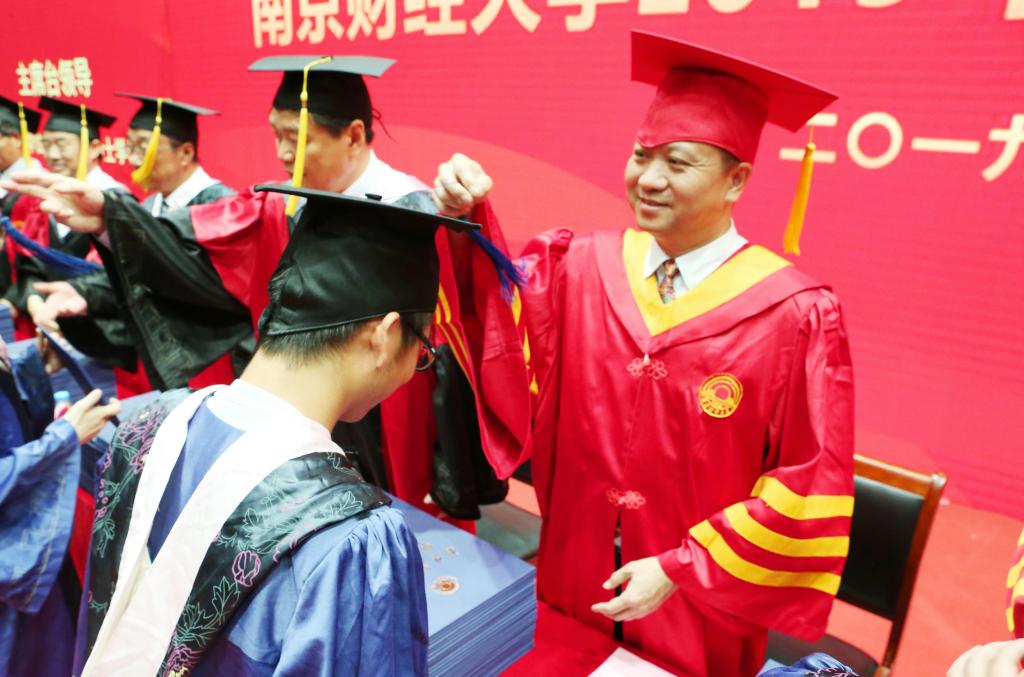 程永波校长为获得硕士学位的硕士研究生拨穗