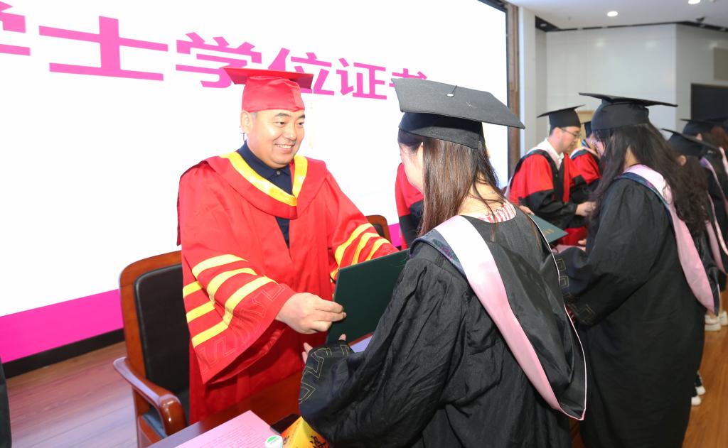 校党委书记张利民为毕业生颁发学位证书