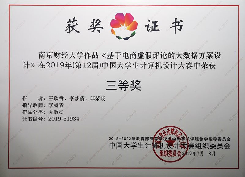 《基于电商虚假评论的大数据方案设计》获“大数据”类三等奖