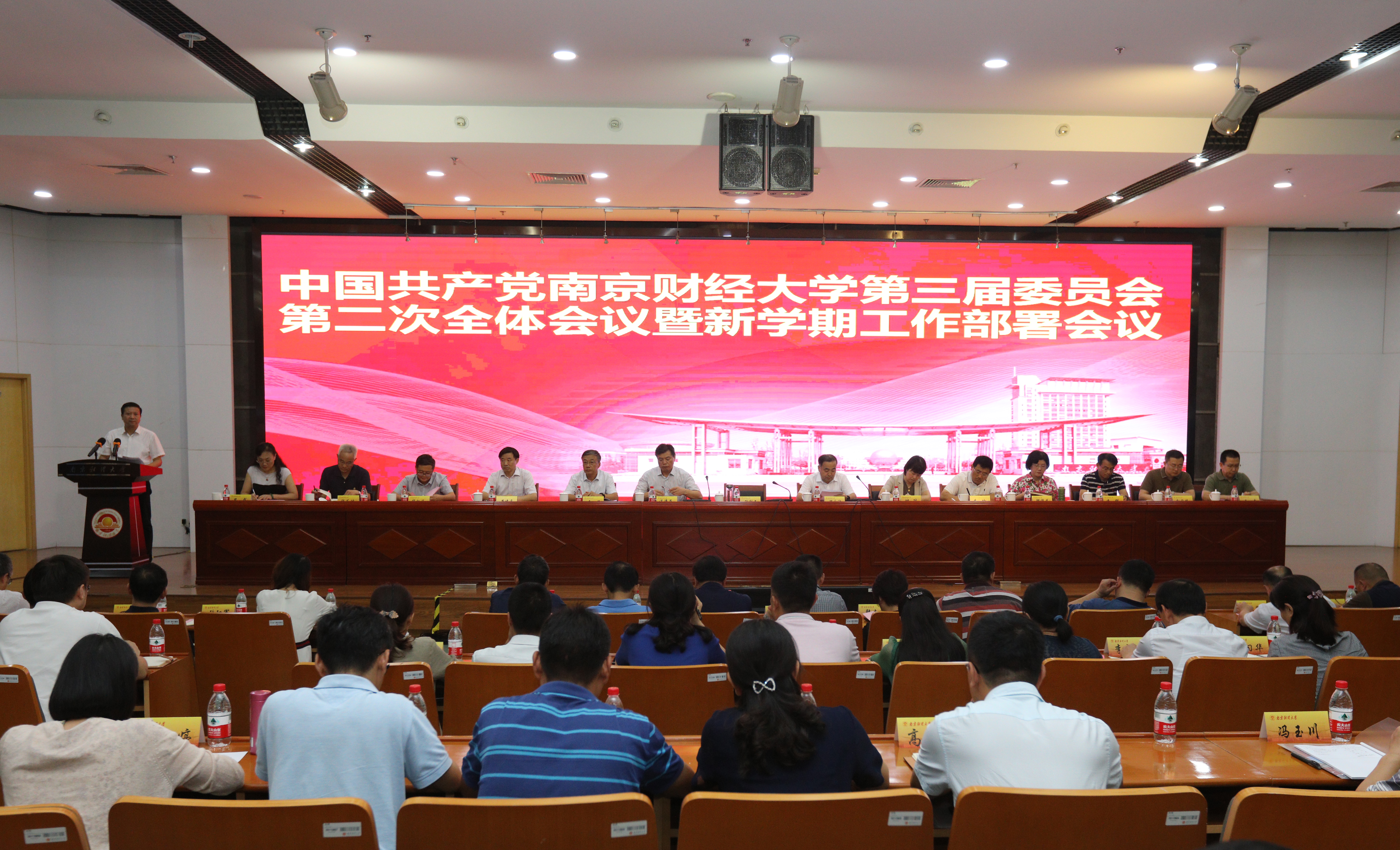 8月31日下午,中国共产党金年会jinnianhuicom第三届委员会第二次全体会议暨新学期工作部署会议在仙林校区图书馆报告厅召开。会议以习近平新时代中国特色社会主义思想为指导,贯彻全国全省教育大会精神,落实省委省政府决策部署和学校第三次党代会精神,总结上半年工作,部署下半年任务,动员全校师生员工更加自觉守初心担使命,更加扎实推动高质量发展,奋力谱写特色鲜明高水平财经大学建设的新篇章。全体校领导、党委委员、纪委委员,全体中层干部,各民主党派、统战团体负责人,各级人大代表、政协委员,教代会执委会全体委员,全体教授参加会议。会议由校党委书记张利民主持。