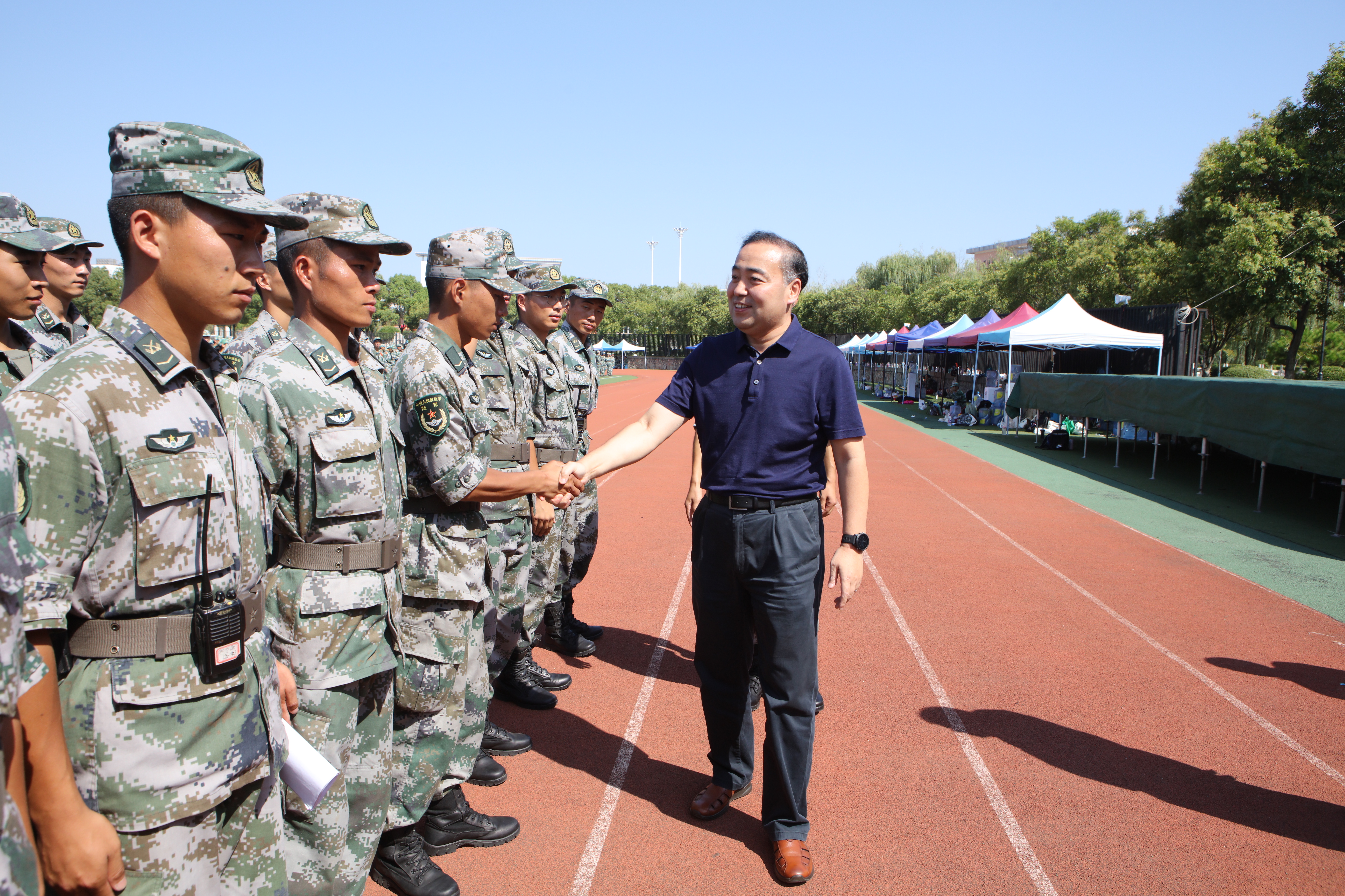 9月18日-19日,校党委书记张利民、校长程永波、副校长李群分别在相关职能部门负责人的陪同下来到仙林校区西苑操场,看望慰问承训的临汾旅教官及参训学生。