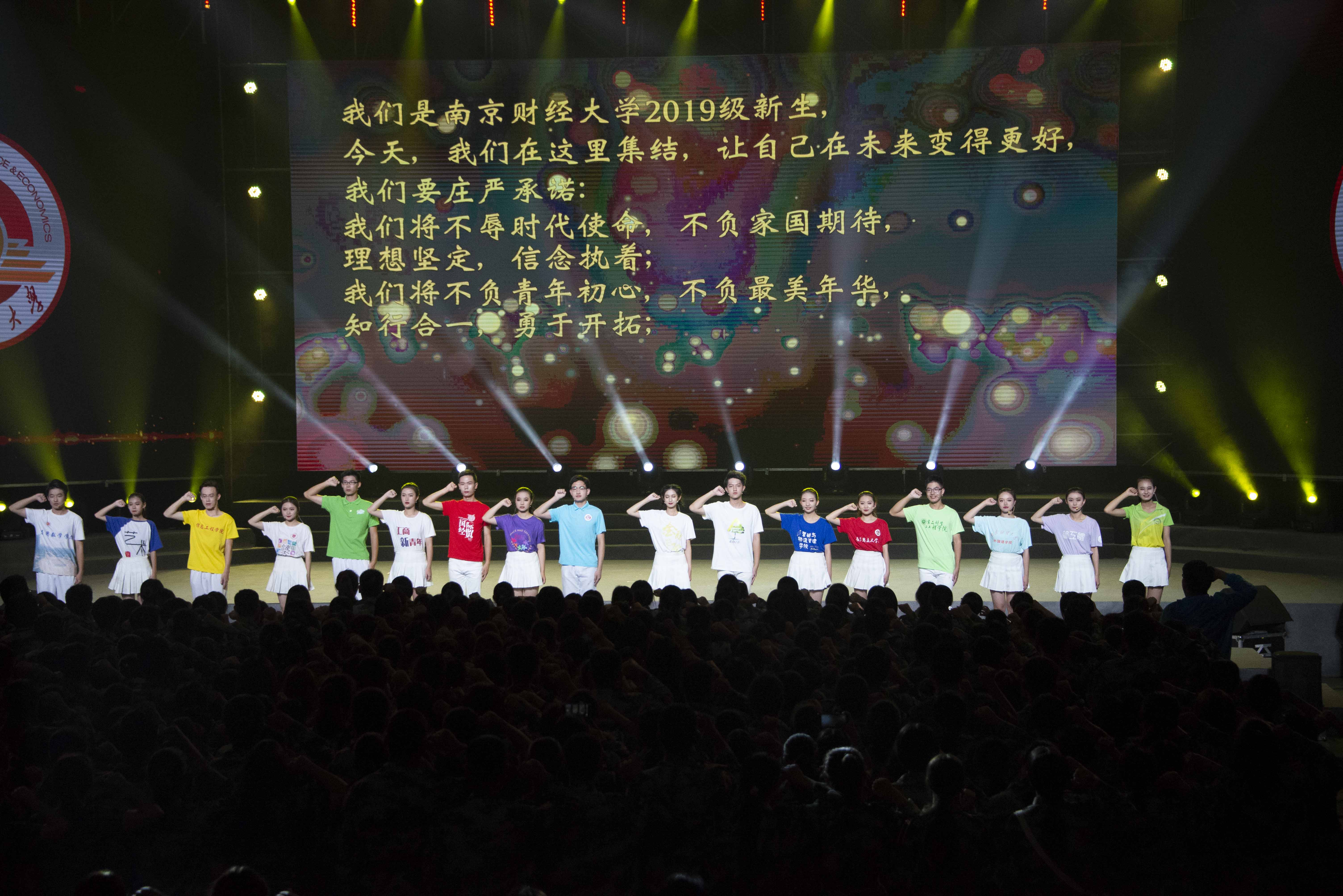舞蹈《碇步桥水清悠悠》舞姿曼妙,舞步轻盈,将一幅小桥流水人家的画卷徐徐展开;肢体剧《自习室的故事》以夸张的肢体动作,跌宕起伏的故事情节,配以活泼的音乐,让同学们在捧腹大笑中也不禁有所反思;音乐剧《指尖上的生活》通过舞蹈演员们活力四射的歌曲独白和舞蹈动作,告诉我们当代大学生不应被手机所束缚;歌舞串烧《校园之歌》《同桌的你》《夜空中最亮的星》等经典歌曲轻柔舒缓,清新自然;新民乐《江南》琵琶古筝优雅灵动,二胡鼓点雄浑厚重,共同诠释了一个古色古香的梦境;国际教育学院留学生们带来的歌曲《我爱你,金年会》歌词字字动人,用悠扬的歌声向金年会表白;《青春有你》将金年会版的创造101和偶像练习生搬上舞台,尽显青春活力,将晚会气氛推向高潮;《困·战》用肃穆的音乐、强健有力的舞蹈动作致敬教官;校友张远惊喜现身,带来歌曲《伤城》《勇者无畏》,游刃有余的台风点燃全场,赢得学弟学妹们阵阵尖叫;音诗画《追梦·最青春》别出心裁,彰显青春风采;举起右臂,紧握拳头,新生宣誓环节,以青春之名,庄严承诺不负青年初心,不负最美年华,不辱时代使命,不负家国期待,为中华民族的伟大复兴而奋斗。