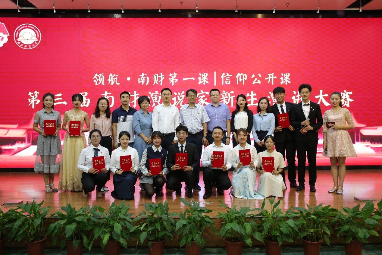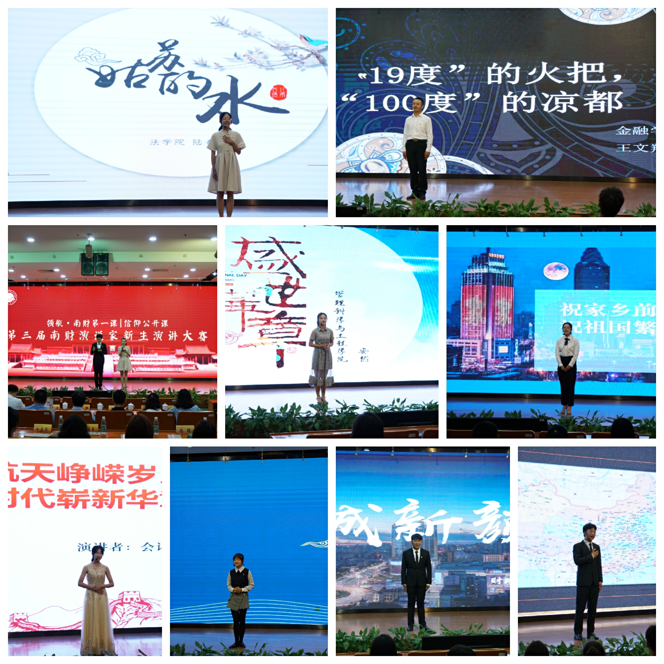 李群副校长讲话。他说,在决赛的舞台上,历经层层选拔、来自9个省市自治区的10位选手演绎了精彩的家乡故事,演讲内容有深度,舞台表现风度佳,展示了“才貌俱佳”的金年会人形象。他希望大家珍惜青春年华,上好理想信念这一课,用理想指引人生方向;上好青春奋斗这一课,努力把自己打造成为建设祖国和家乡的硬材料;上好德才兼备这一课,做热爱祖国和家乡的大写的人。最后,李群副校长号召大家上好大学的每一课,上好人生的每一课,为加快建设特色鲜明的高水平财经大学贡献力量,以饱满的热情、优异的成绩庆祝新中国成立七十周年!