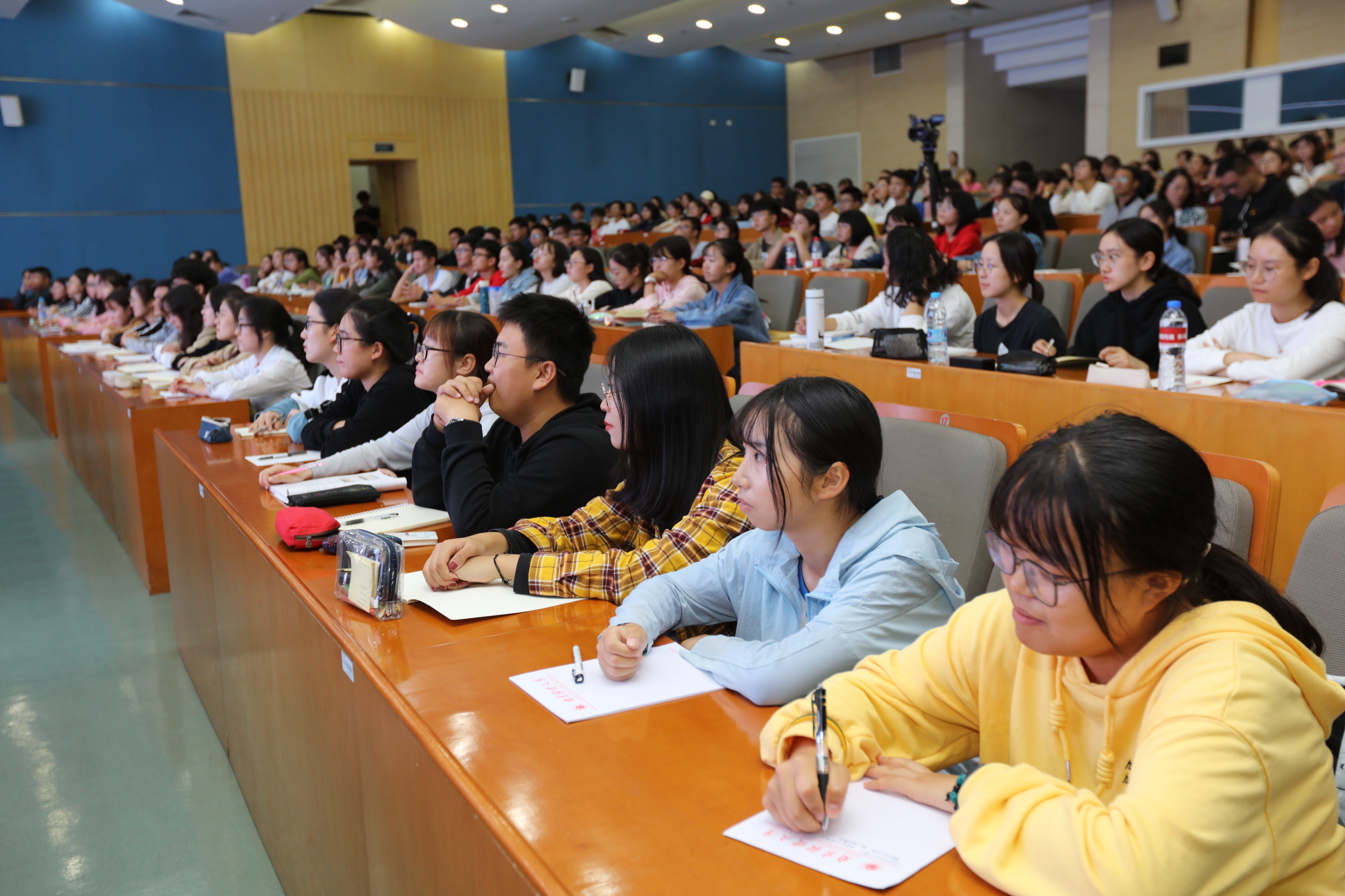 10月9日晚,金年会仙林校区图书馆报告厅座无虚席,校党委书记张利民为2019级新生讲授了主题为“勇担时代使命 践行金年会精神”的公开课。