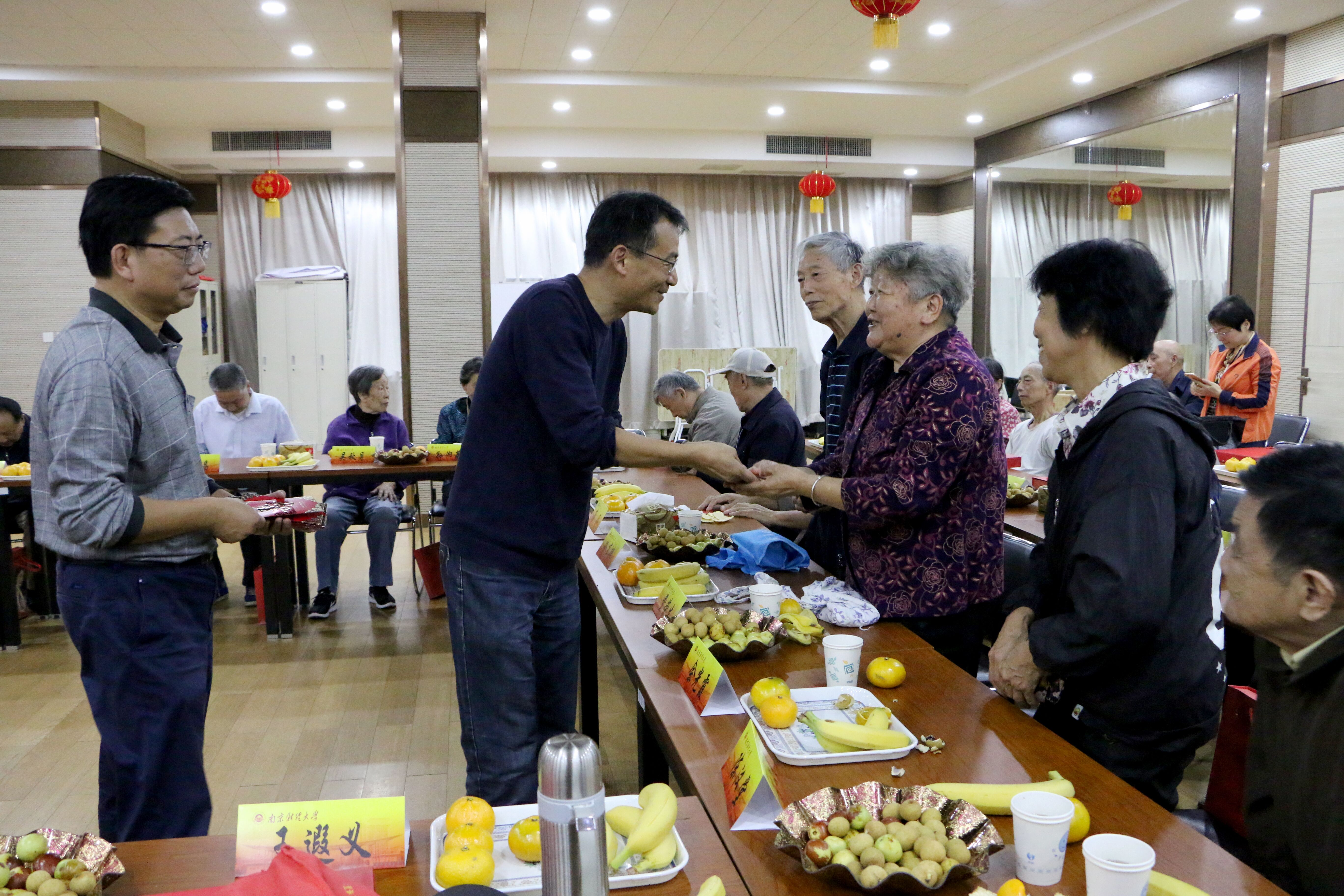 伴随着欢快的生日快乐歌,李群副校长等为老同志发放生日礼金并与大家合影留念,现场充满喜庆的氛围。