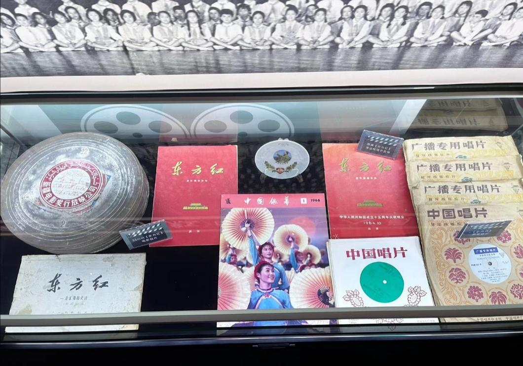 图为华夏胶片电影展示馆内《东方红》相关藏品