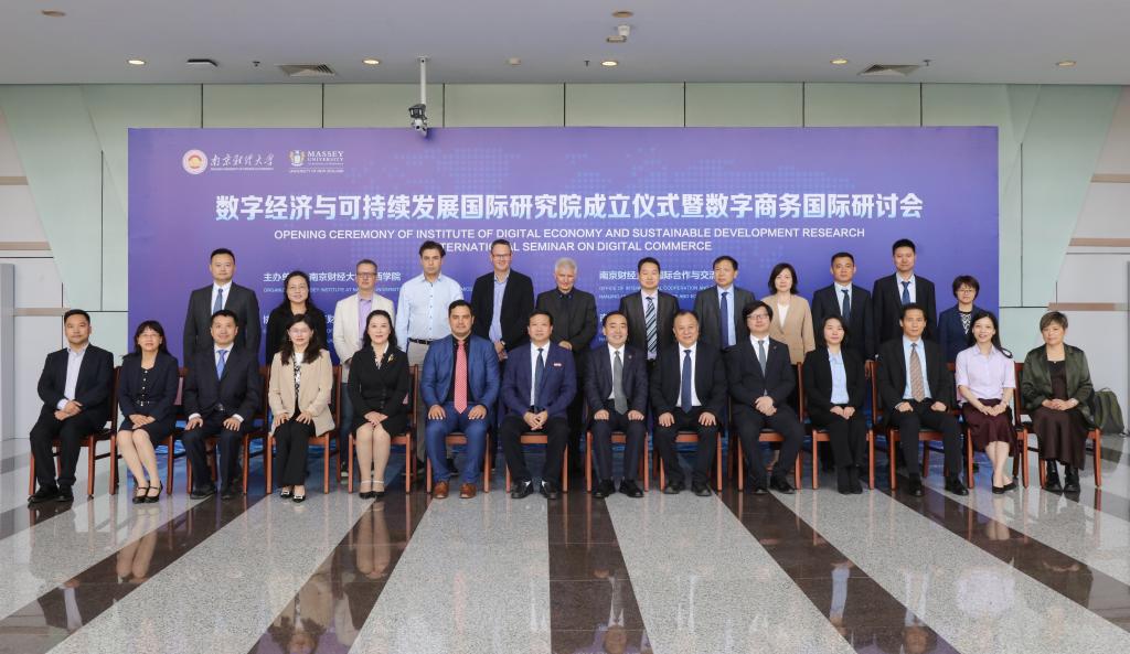 研究院揭牌后召开了数字商务国际研讨会,来自梅西大学、金年会jinnianhuicom、德州大学达拉斯分校的专家学者围绕数字经济、跨境数字化贸易、数字商务、可持续发展等主题展开研讨。
