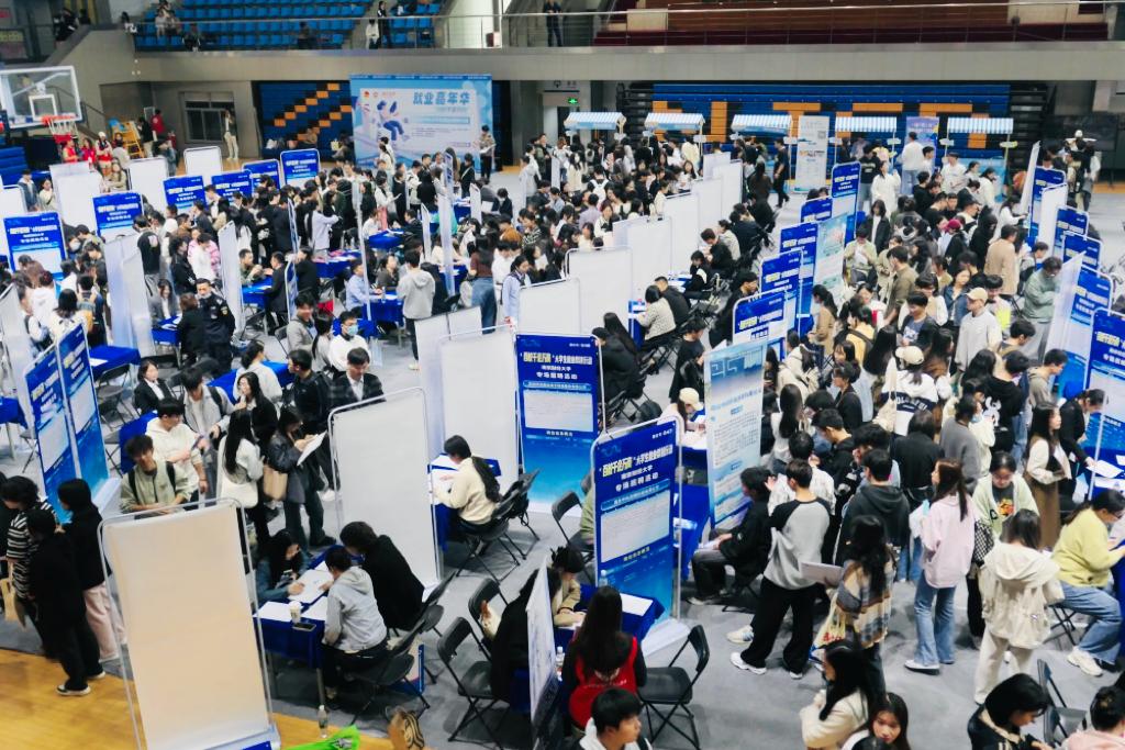 “我们公司为职场新人制定了完整的培养体系”“我们为员工提供单人宿舍”……招聘会现场,企业招聘人员纷纷亮出“王牌优势”,向毕业生们伸出橄榄枝,上演了一场紧张刺激的“抢人大战”。