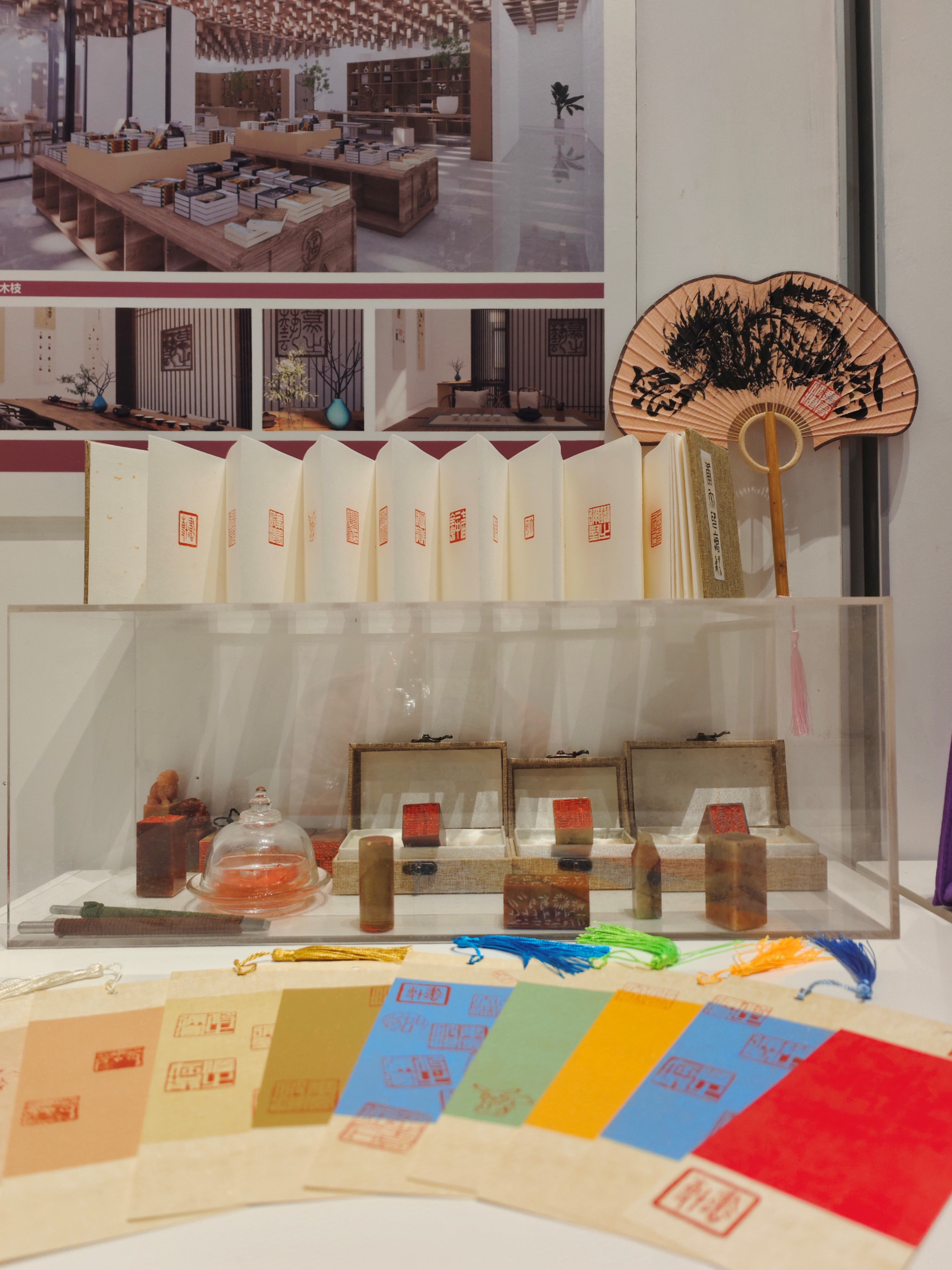 “篆之艺——中华优秀传统文化体验空间”陈列了环境2001班王康文同学大学期间的篆刻作品。该建筑分为2层,第一层包括篆展、篆坊、篆馆三大区域,以观展、实践、交流为设计流线。第二层包括篆展服务空间、文创空间、住宿空间。王康文认为篆刻艺术作为中华优秀优秀文化的重要组成部分,新时代青年应主动去深入挖掘和阐发篆刻艺术的时代价值,让更多人了解和体验中华优秀传统文化的魅力。