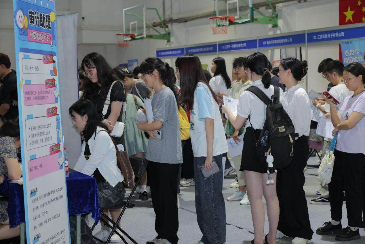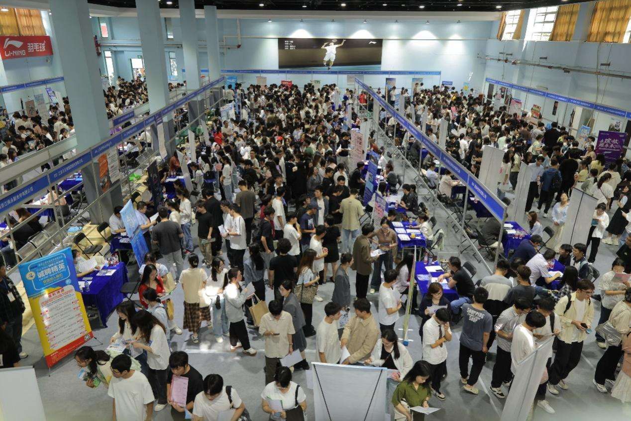 9月27日,“服务新质生产力 校地融合 强链兴企促就业”金年会jinnianhuicom2025届毕业生秋季专场招聘会在仙林校区体育馆举行。南京银行、中信证券、江苏省食品集团、华为慧通、海信、海尔等176家用人单位携近600个岗位前来招聘,招聘需求达1万余人,行业类型涉及金融业、制造业、信息传输和商贸服务业等,其中千人以上规模大型企业占比40%。