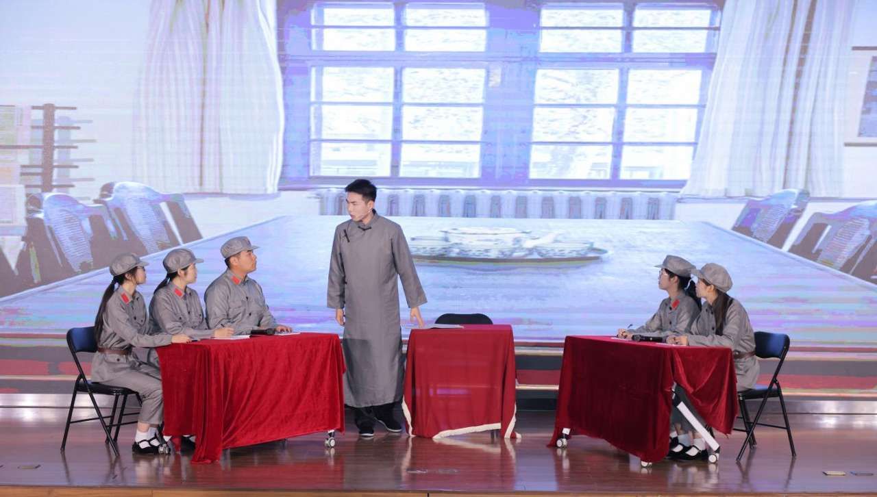 经济学院团员青年们创新演绎了红色情景剧《擎旗御侮 雨花英烈——罗登贤》,生动再现了1931—1933年间罗登贤从肇创东北抗日人民武装到组织工人、学生罢工游行,最终于南京雨花台英勇就义的壮烈事迹。金融学院团委带来的情景朗诵《青春宣言·跨越百年的对话》以1919年和2025年青年跨时空对话的形式,在波澜壮阔的历史坐标中展开两代人的精神共振。