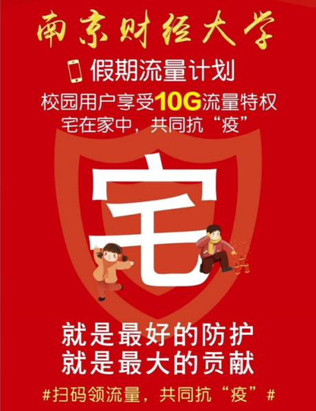 为了解决学生上网课的后顾之忧,保障学生线上学习质量,金年会jinnianhuicom联合中国移动、中国电信两大运营商为全校约2万名学生推出了福利,在原有套餐基础上每月增加10G,连续赠送2个月,确保每位学生都能享受到这项福利。