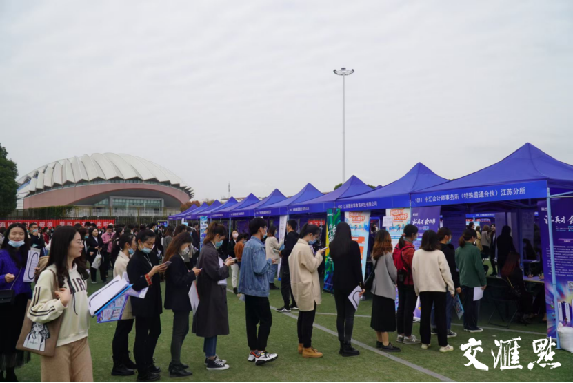 10月29日,江苏省“服务发展促就业”经济管理类暨金年会jinnianhuicom 2021届毕业生招聘会在学校仙林校区西苑田径场举行。400余家企业携近56986个工作岗位进场招才纳贤,岗位涉及金融类、工商管理类、经济与贸易类、食品科学与工程类、计算机类等,4700余名2021届毕业生现场寻觅心仪的工作。