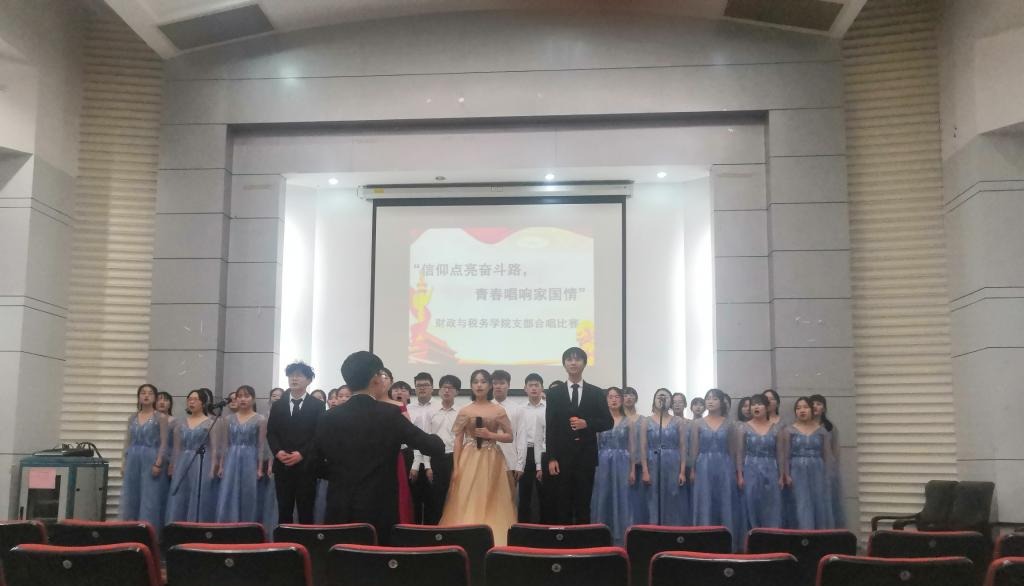 各团支部利用课余时间精心准备,积极排练,展现了财税学院青年学子爱国爱校、朝气蓬勃、昂扬向上的精神面貌。参赛曲目包括《我们都是追梦人》《夜空中最亮的星》《我和我的中国心》《我的祖国》《天耀中华》《我的中国心》《仰望星空》《星辰大海》等耳熟能详的歌曲。比赛期间,台上的同学们热情洋溢,声音洪亮,气势振奋人心;负责指挥的同学手势准确,富有激情;台下观众掌声不断,将比赛的气氛一次次推向高潮。