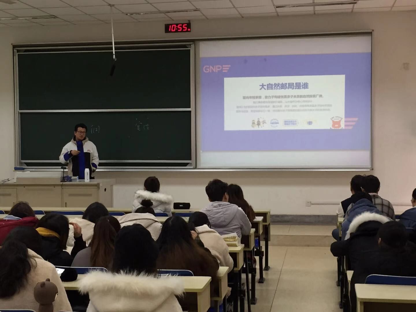 孟宪法校友是大自然邮局主理人,同时也是上海智侠科技有限公司总经理,拥有15年的品牌营销和IP打造经验。他分享了自己对创业的理解与感悟。他说,针对社会家庭亲子陪伴缺失的现状,自己创办了大自然邮局,面向年轻家庭,致力于构建优质的亲子关系。他所倡导的价值观是持续的爱与负责任的连接。其中的方法论是硬核共建。主要的产品体系包括三个部分:以自然科普漫画为始,创造达尔文的可爱正太形象,引导孩子对自然产生兴趣;在此基础上,用自然探索盒子作为延续,通过室内小道具,实现在家庭客厅的自然探索,作为真正有效的亲子陪伴,而不是无脑认知图片;最终发展成自然探索营地,包括山猫集市和山猫矿业公司,在更广阔的室外实现更益智趣味的有效陪伴。