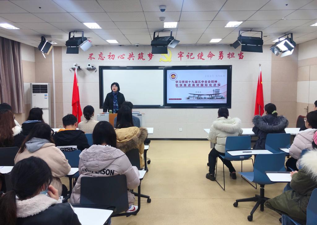 12月29日,作为食品科学与工程学院学生党支部的政治辅导员,校党委常委、副校长邱伟芬教授在仙林校区工科楼214教室为食品科学与工程学院部分教师党员代表,全体本科生党员以及研究生第一党支部党员讲授了题为“学习贯彻党的十九届五中全会精神,加快推进金年会国际化进程”的党课。党课由食品科学与工程学院党委副书记周进进主持。