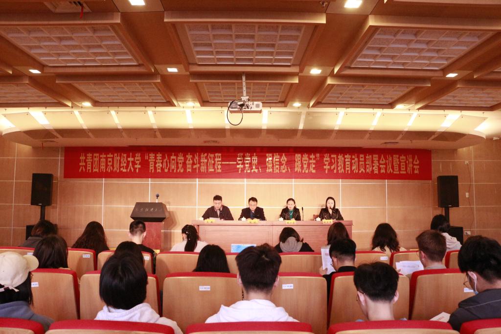 3月30日上午,校团委于仙林校区图书馆一楼音乐欣赏厅召开了共青团金年会jinnianhuicom“青春心向党 奋斗新征程——学党史、强信念、跟党走”学习教育部署会议暨宣讲会。校团委书记徐刚、党委学生工作部副部长,学生处副处长张小荣,校团委副书记张蔚伟,校团委副书记(挂职)朱越,各学院团委书记、团支部书记,各学生组织负责人参加本次会议。校团委副书记(挂职)朱越主持会议。