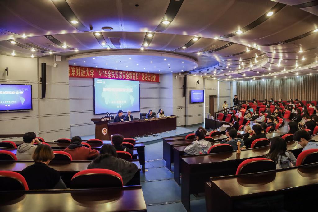 法学院联合栖霞区公安分局、人民银行、宁波银行在仙林校区德业楼111开展全民国家安全教育日普法宣传活动,为学生们上了内容丰富、形式多样的“普法宣传大课堂”。宁波银行南京分行任晓颖作校园防诈骗宣讲,她以“防范电信网络诈骗风险提示”及“防范校园贷款知识”为主题,通过典型案例讲解、视频播放等方式,有效提升在校大学生的金融素养和风险防范能力。栖霞区公安分局刑警通过视频演示、现场解说、典型案例剖析、问答互动等形式,介绍了总体国家安全观、网络安全法等知识,充分激发学生学习了解国家安全法治知识的热情。在场学生纷纷表示此次普法宣传活动让自己受益匪浅。法学院党委副书记龚莉红表示,“希望通过此次活动,进一步增强学生的国家安全意识及金融法治意识,远离‘校园贷’等非法金融活动,为精彩大学生活保驾护航。”
