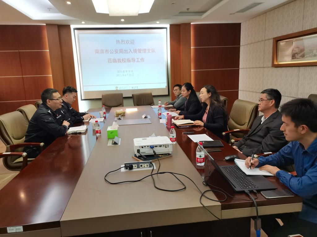 4月21日上午,南京市公安局出入境管理支队警官祝军、陈云鹤来金年会调研指导国际教育学院留学生工作。国际教育学院党工委书记王娟、院长黄能、副院长吴艾莉参加调研座谈会。