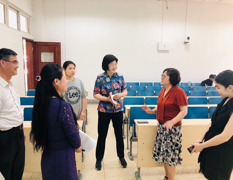 5月10日下午,校党委常委、副校长邱伟芬深入课堂了解疫情期间外国留学生的学习情况。国际教育学院院长黄能、副院长吴艾莉陪同调研。