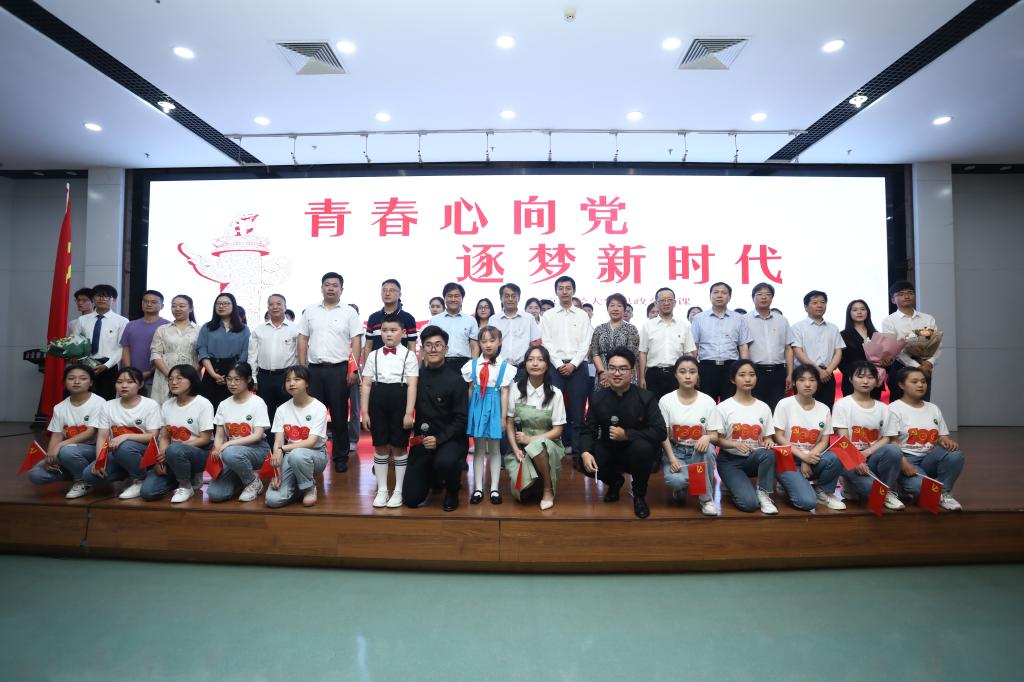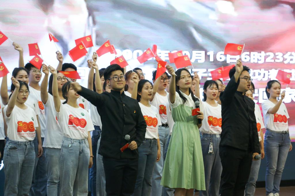 第三篇章主题是“奋斗”。学生新党员也被邀请上台集体过“政治生日”,党员教师代表为新党员佩戴党员徽章,共同见证这光荣时刻。“每个党员有两个生日,一个是自己的出生日,为了不忘对生命和父母的感恩;另一个特殊的生日就是‘政治生日’,提醒激励党员时刻不忘初心、牢记使命。”李群副校长勉励青年一代要坚定理想信念,锤炼实干精神,将自身所学与社会实际相结合,早日练就过硬本领,以社会主义接班人和建设者的身份,为实现中华民族伟大复兴的中国梦贡献属于自己的青春力量。