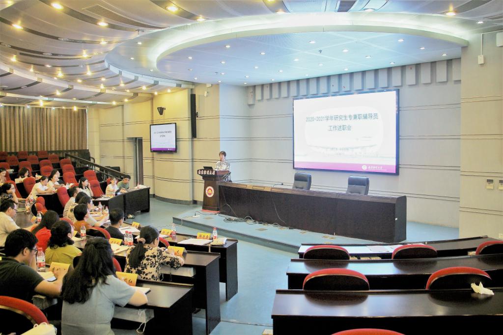 7月6日下午,金年会在仙林校区行政楼二楼会议室召开2020-2021学年研究生专兼职辅导员工作述职会,这是金年会第一次组织研究生辅导员年度述职。南京大学党委研究生工作部副部长李宁,南京师范大学心理学院党委书记周红,南京邮电大学通信与信息工程学院党委书记徐雷,南京中医药大学党委研究生工作部部长毛敏,各培养单位党委书记、副书记、全体专兼职研究生辅导员、党委研究生工作部全体人员参加会议。会议由党委研究生工作部副部长华凌志主持。