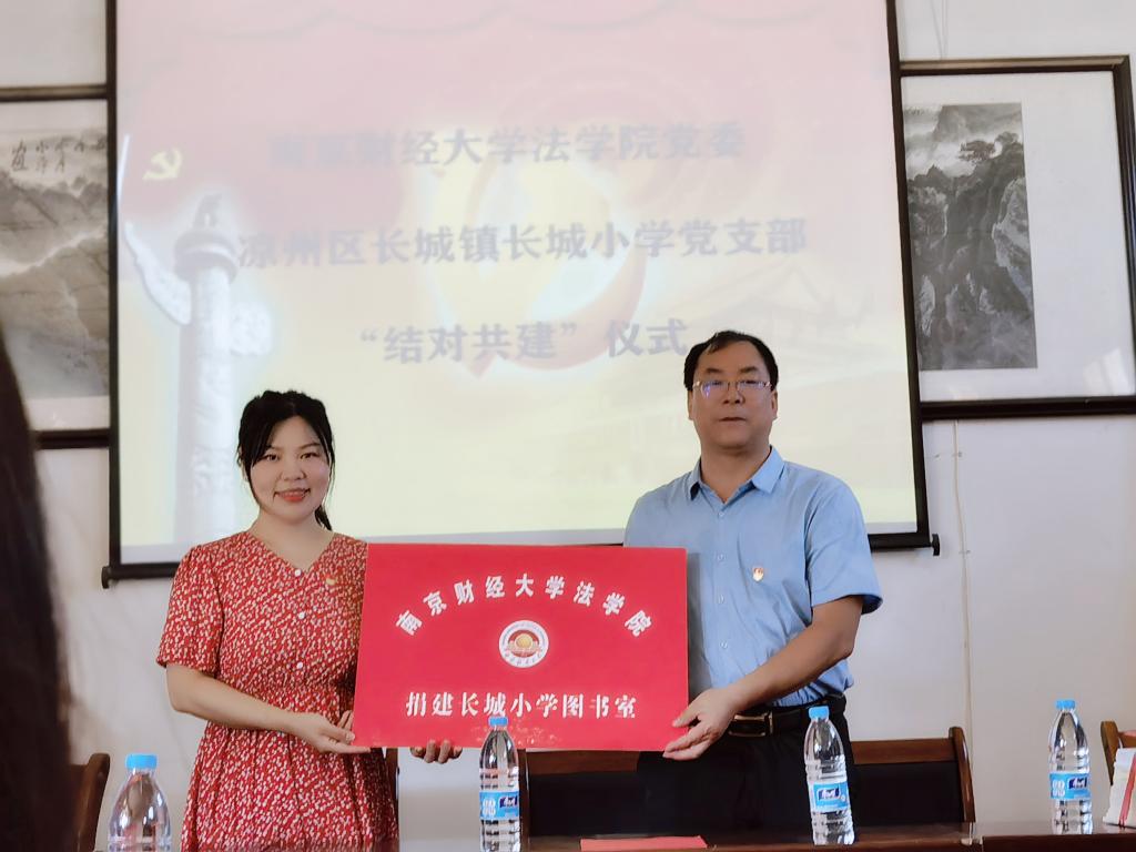党建共建仪式上,谢长生书记为法学院社会工作系党支部与长城小学党支部结对共建授牌。龚莉红副书记向长城中心校捐赠物资。此次法学院向长城小学捐赠笔记本电脑3台,向长城中心校党总支捐赠党史学习资料100本,向长城中心校捐赠图书3000册。