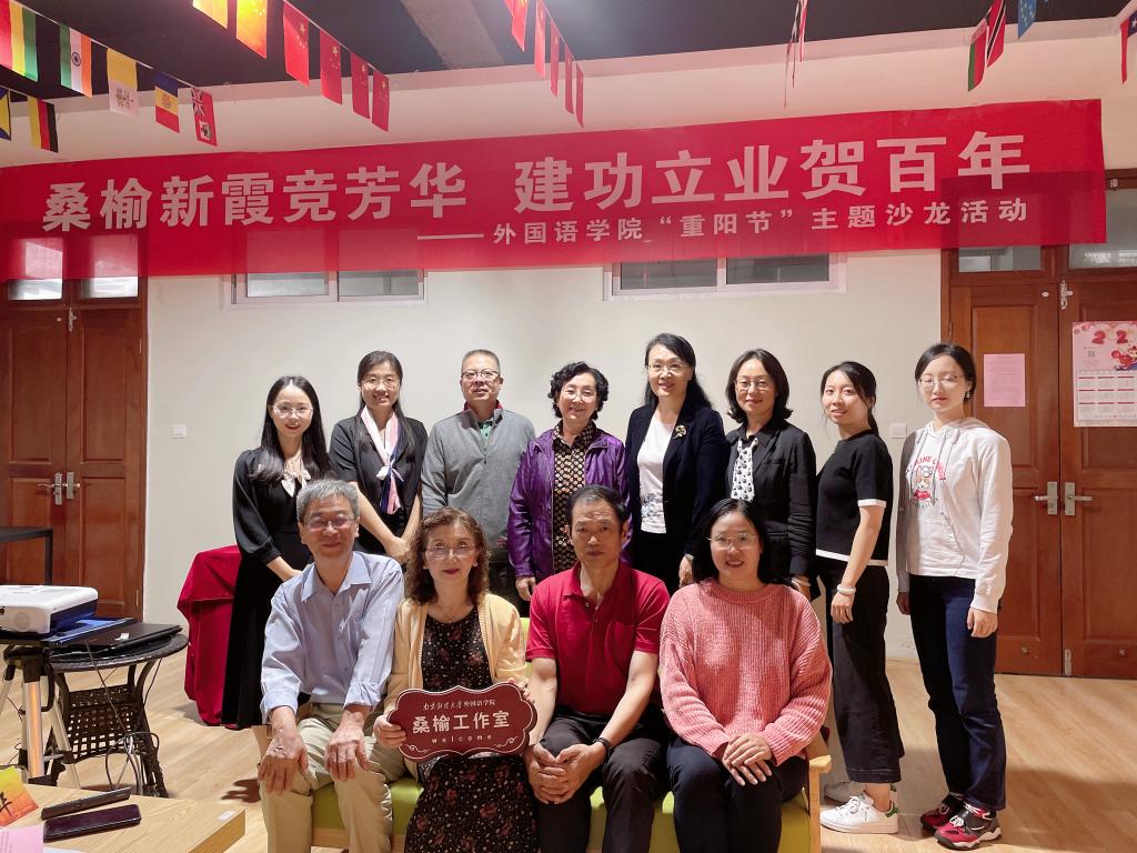 李骏书记、孙勇彬院长首先发表了情真意切的致辞,接下来的活动以现场访谈的形式进行。冯建文教授及夫人赵慧珍教授以“行走在世界的每个角落”为主题,和大家分享了他们在多个国家的学习、工作经历,他们建议各位“外语人”利用好语言这个工具,行走万里、开拓视野,并提醒青年教师,科研攻关没有“速成”,更没有捷径,“坐得住冷板凳,下得了苦功夫”永远是科研攻关最美的姿态。辅导员孟德明老师以“爱与责任”分享了他与学生的点滴往事。他勉励学院年轻辅导员,要秉持信仰、坚忍之剑,在育人道路上彰显使命担当,用爱心滋润学生心田、用诚心赢得学生认可、用热心帮助学生解难、用耐心陪伴学生成长,做学生信任的“家长”和靠谱的“朋友”。“为老师们提供最坚实的后盾,解决他们的实际困难,让老师没有后顾之忧”——这是李丽萍老师作为院工会主席的初心和使命。她甘愿做最美的基层工会奉献者,做老师们最信得过的贴心人、娘家人,她用实际行动践行“奉献是人生最大快乐”的真切含义。随后在场的老中青三代教师就教学、科研、管理、育人等方面展开互动交流,现场气氛热烈而温馨,大家受益良多。