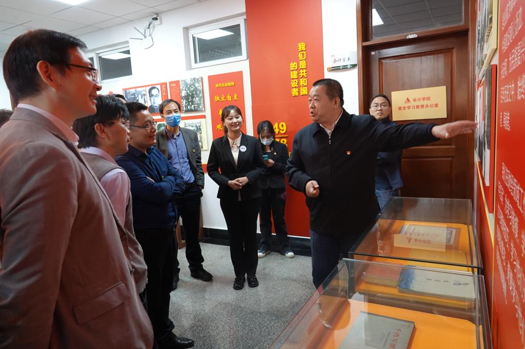 卜金涛书记带领学员至仙林校区德济楼三楼参观会计学院“百年红起”文化长廊,生动讲述了红色企业家的感人事迹和珍贵藏品的来历及精神内涵,激发了学员们向优秀企业家学习的动力。