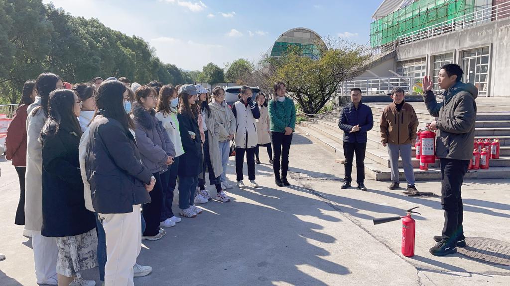 外国语学院联合保卫处通过设计应急预案、熟悉灭火器械、开展应急演练、完善预案漏洞等四种形式开展了消防安全教育活动。演练活动前,消防科高俊老师带领同学们对学校体育馆消防设施设备可靠性进行了全新的探索,给大家展示了馆内自动化消防水枪装置在大空间识别烟雾并精准进行灭火作业的作用,介绍了消防喷淋稳压泵和消防联动设备响应原理。同时,还通过多种形式教授新生们一些自救的方法,要求新生们根据宿舍所处位置,设计了逃生路线图。消防应急演练中,当烟雾报警器刺耳地响起,学生们身临其境地体验了火灾到来的紧张感。体育馆内疏散提醒系统随之运作,安全通道瞬间打开,同学们有条不紊,俯身低头、快速有序地拿起湿毛巾,捂住口鼻,沿着指定安全通道快速撤离,并有序撤离到操场的安全地带。操场上,消防科还准备了数十个干粉灭火器供全体新生亲自演练灭火器的使用方法。演练结束后,保卫处副处长潘雪峰对本次演练进行总结,针对演练过程中存在的不足进行了分析讨论,并强调消防安全无小事,各部门要保持忧患意识,警钟长鸣,要以此次实战演练为契机,不断提高校园消防安全意识。