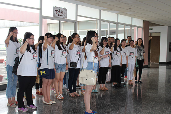 种植完毕,毕业生全体党员在党旗下庄严宣誓。