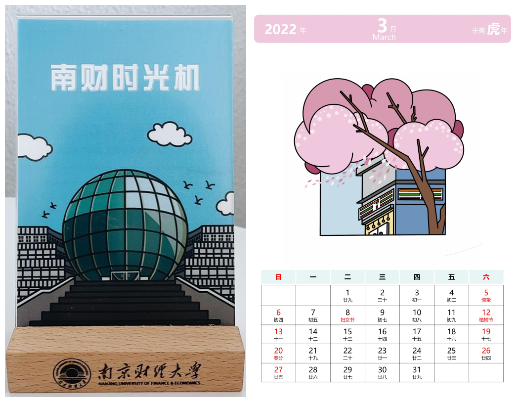 来自不同学院同学献给党的情诗、代表学校12个月不同景象的手绘……这是艺术设计学院同学们精心制作的2022年“金年会时光机”台历,以“艺设人”的特有方式,把对中国共产党的崇敬、对学校的喜爱刻进每日每夜中。