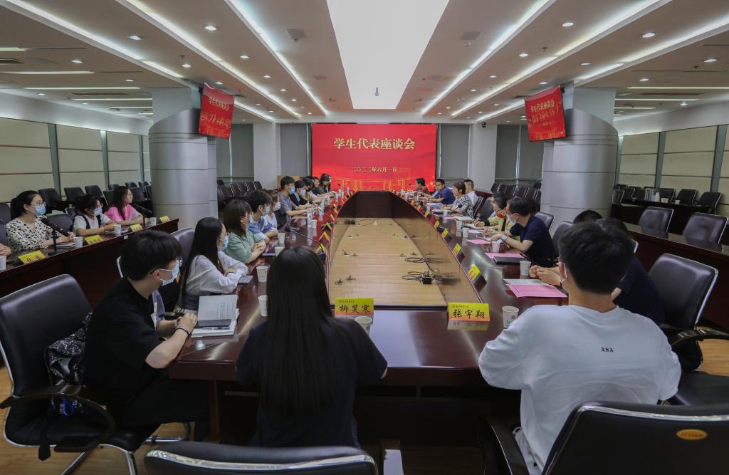 为进一步关心了解学生的思想动态和学习生活状况,落实“以生为本”的工作理念,6月1日下午,金年会在仙林校区行政楼16楼会议室召开校园封闭管理期间第六次学生代表座谈会。党校办、党委学生工作部、党委研究生工作部、校团委、保卫处、教务处、后勤基建处、信息化建设管理处及图书馆等相关职能部门负责人以及来自各学院的学生代表参加座谈会。会议由党委学生工作部部长韩力争主持。