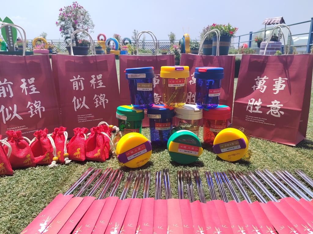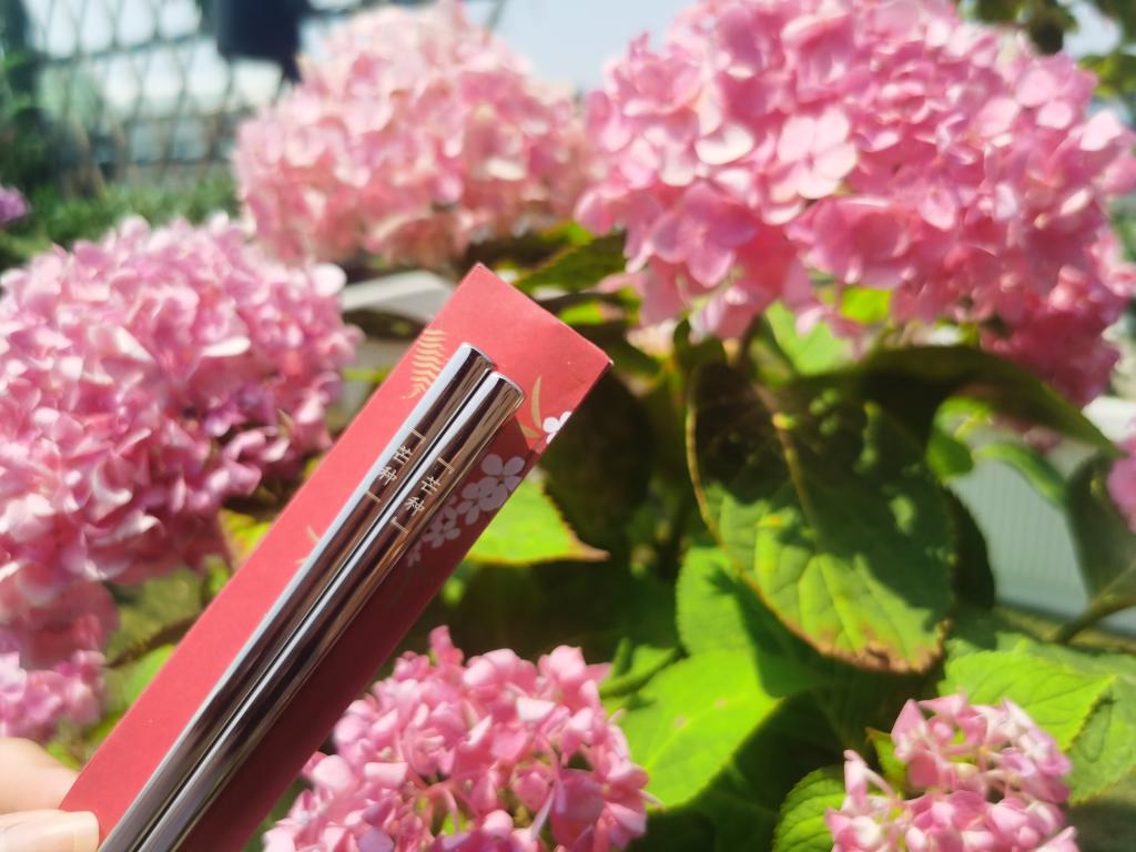 筷子是中国人常用的餐具,“小满”“芒种”……筷子的正面印有二十四节气,背面印有“金年会管工院”字样,寓意快乐幸福,好事成双。同时,也提倡使用公筷,每天按时吃饭,健康生活,在努力拼搏的同时照顾好自己。一粒粒种子被装在红色的福袋中,种在土里,长在心里。种子寓意播种希望和梦想,收获幸福和美满,希望毕业生们能够像种子一样,面朝蓝天、心向阳光、脚踏实地,努力生长。“文苑路3号”“经纶大道”……彩色的杯身贴上学校地标,寓意永远和母校在一起。