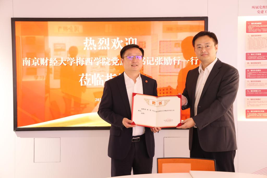 梅西学院党总支书记张励行向胡俊副总经理颁发行业顾问聘书