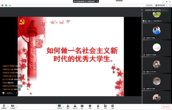 10月31日晚,信息工程学院院长、本科生第二党支部政治辅导员黄健教授以“如何做一名社会主义新时代的优秀大学生”为题,线上为党的发展对象培训班的学员和支部党员上了一堂专题党课。黄健院长结合党的二十大报告对青年学生的要求,与大家交流了对“崇高的理想信念、高尚的品格、高强的本领才干”以及“立大志、明大德、成大才、担大任”的理解感悟。他希望新时代的青年大学生要敢为人先,努力做担当民族复兴大任的时代新人。